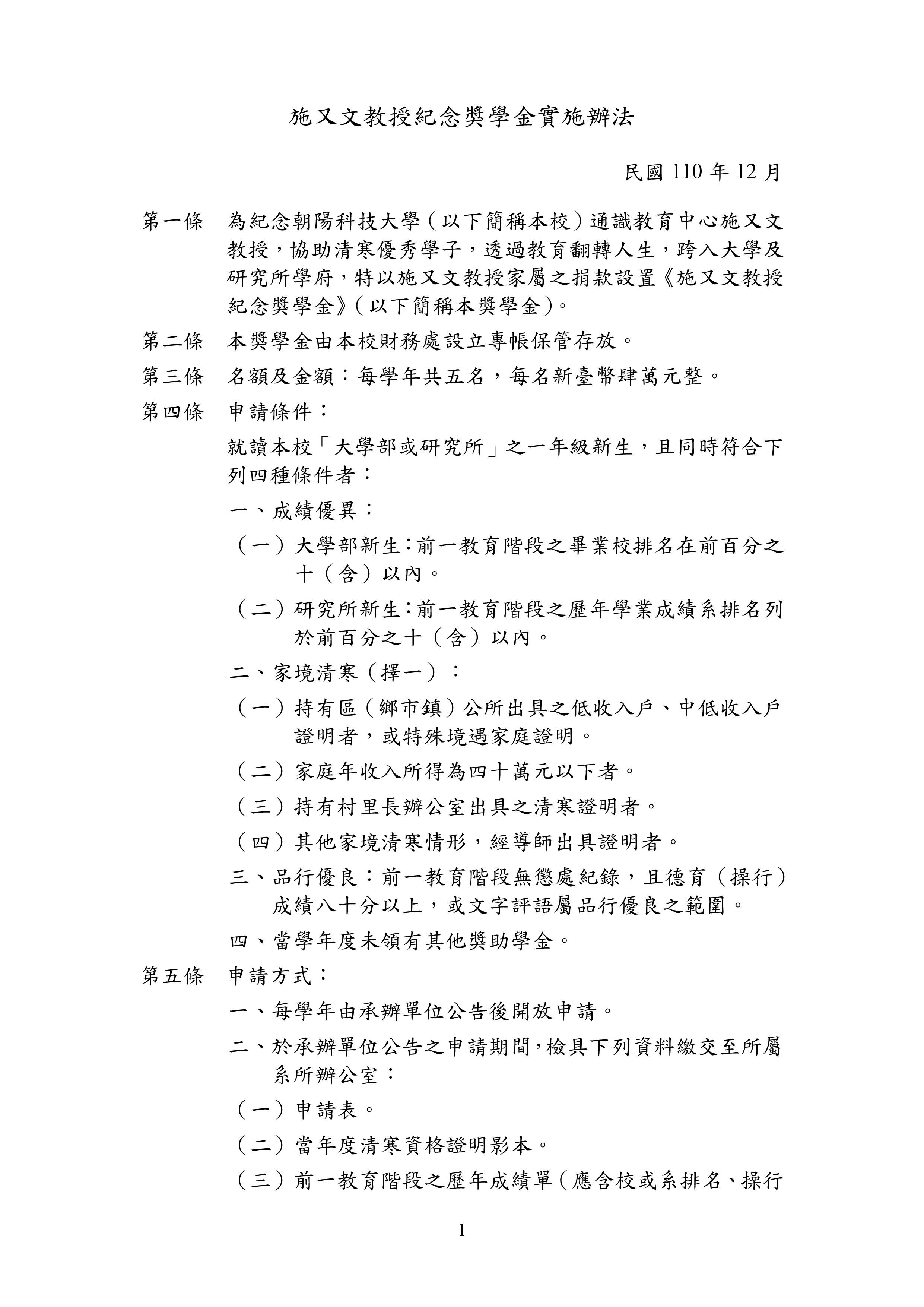 【獎學金】114學年度 施又文教授紀念獎學金報截止日止到10/20喔~