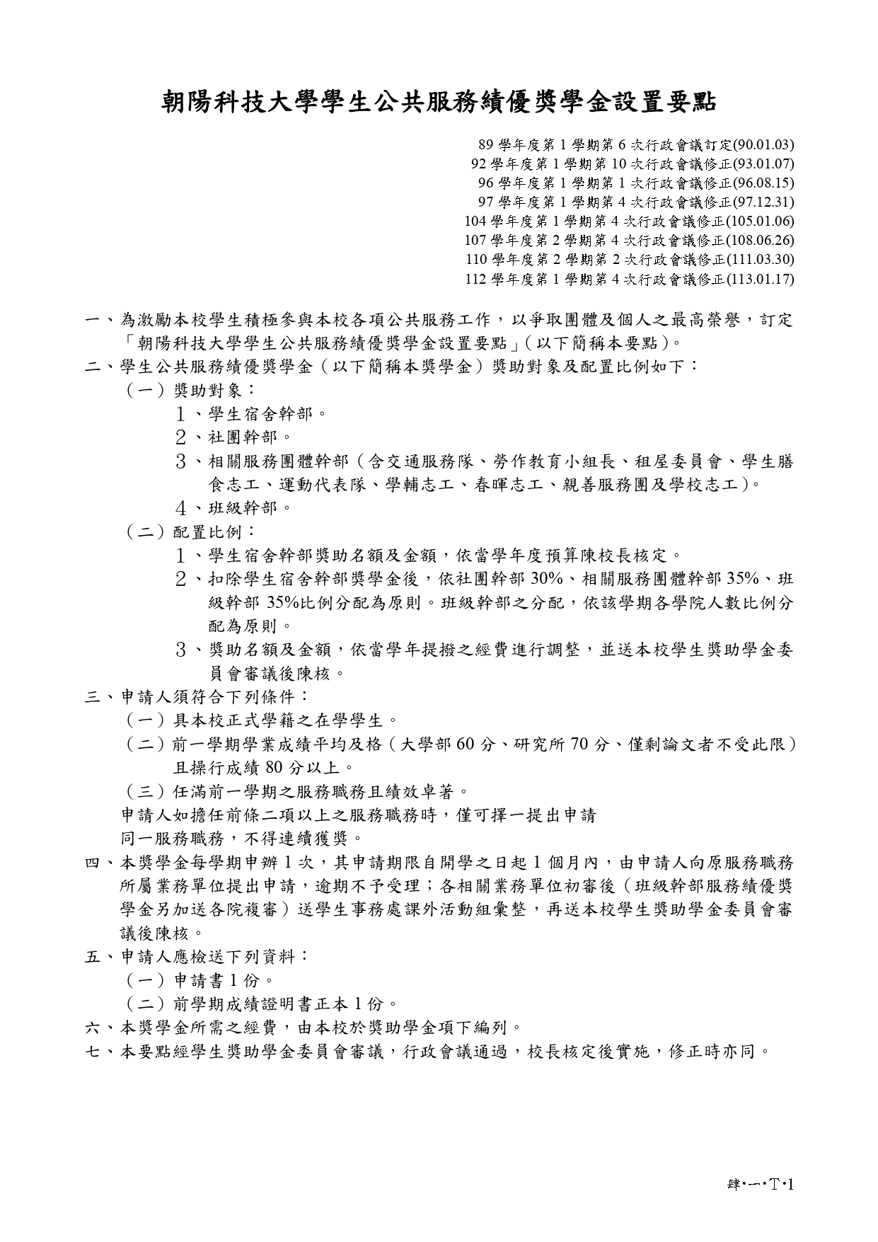附件1:朝陽科技大學學生公共服務績優獎學金設置要點